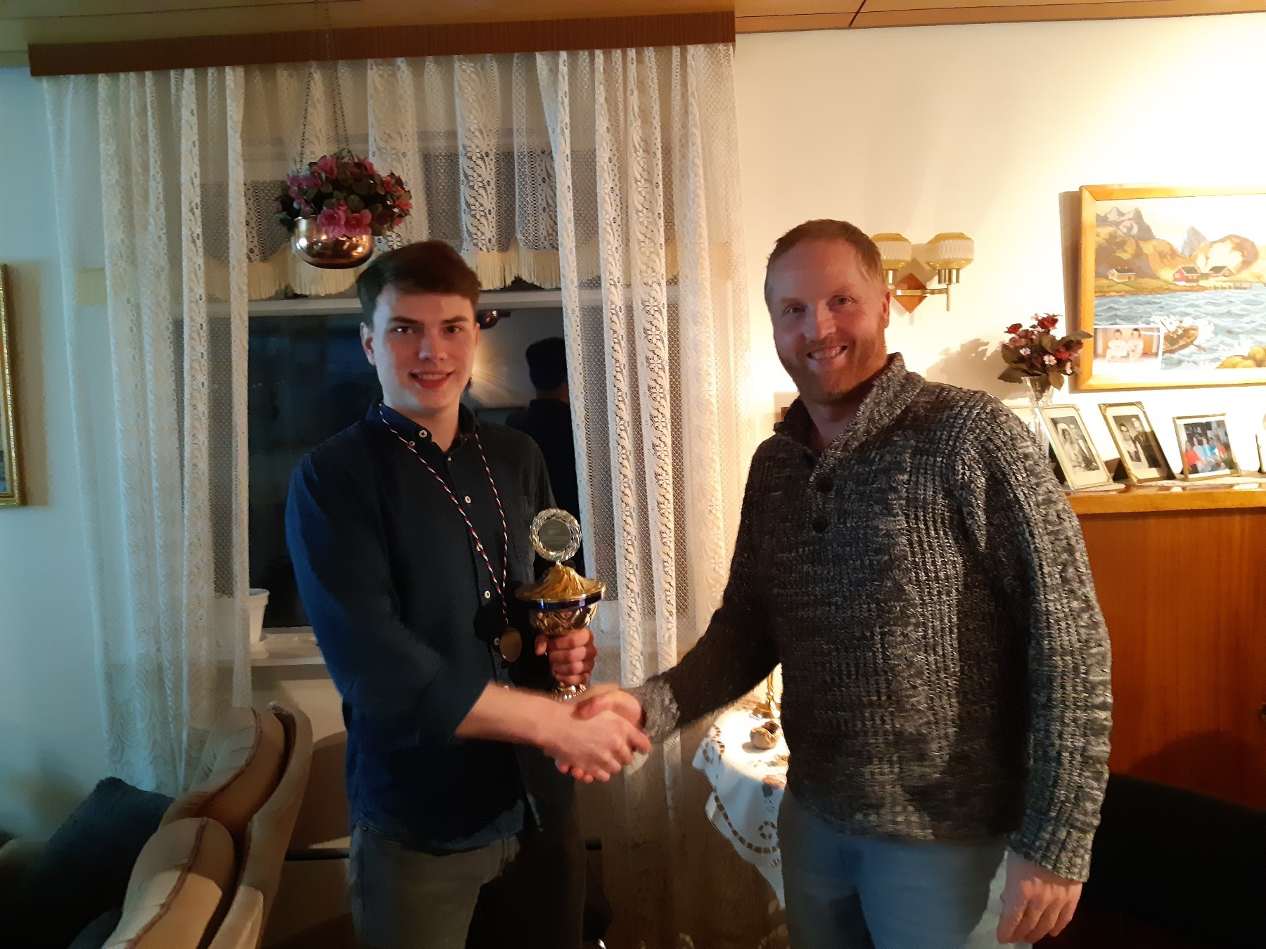 Fréttir 201829. mars 2018 Í kvöld var aðalfundur Sauðfjárræktarfélags Skriðuhrepps haldinn á Staðarbakka. Alls sátu 15 manns fundinn, sem verður að teljast góð mæting í félagi þar sem skráðir félagar eru 20. Á dagskrá voru hefðbundin aðalfundarstörf m.a. að fara yfir niðurstöður skýrsluhaldsins fyrir síðasta ár. Hér er kafli úr fundargerðinni þar sem fjallað er um helstu niðurstöðurnar. Guðmundur ritari félagsins lagði fram uppgjör félagsins fyrir síðasta ár. Alls eru í uppgjörinu 1.592 fullorðin ær, þeim hefur fjölgað um 15 frá síðasta ári. Skýrslufærðar voru 366 veturgamlar ær, sem er fækkun um 21 milli ára. Meðalafurðir voru 29,85 kg eftir hverja fullorðna á í félaginu, sem er 1,25 kg minna en haustið 2016. Hjá einstökum félögum voru mestar afurðir hjá Gunnari og Doris í Búðarnesi eða 36,8 kg eftir fullorðna á. Hver veturgömul ær í félaginu skilaði að jafnaði 13,14 kg sem er 0,57 kg meira en á síðasta ári. Mestum afurðum, eins og hjá fullorðnu ánum, skiluðu gemlingarnir hjá Gunnari og Doris í Búðarnesi eða 18,7 kg. Eftir hverja á í félaginu fæddust 1,92 lömb, en 1,77 komu til nytja. Meðalfallþungi dilka í félaginu var 17,01 kg sem er 0,89 kg minna en haustið 2016. Hæstur fallþungi var hjá Gunnari og Doris í Búðarnesi, 19,6 kg. Meðalflokkun lamba í félaginu var 9,46 fyrir vöðva og 6,41 fyrir fitu. Vöðvaflokkunin lækkar um 0,18 frá síðasta ári og fitan um 0,97. Besta vöðvaflokkun var hjá Sigurði og Margréti, 10,60. Allar skýrslurnar má sjá í heild hér á heimasíðunni. Að venju var afhentur farandbikar félagsins fyrir hæst stigaða lambhrút innan félagsins á n.l. hausti og áletraður verðlaunapeningur til eignar. Að þessu sinni er það Hákon Þór Tómasson, Staðarbakka, sem er þessa heiðurs aðnjótandi.